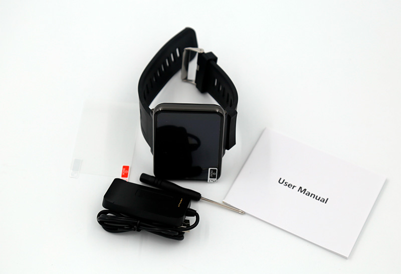 В комплекте: часы, защитная пленка на дисплей, крэдл для зарядки, отвертка для снятия крышки сим-карты, руководство пользователя на английском.