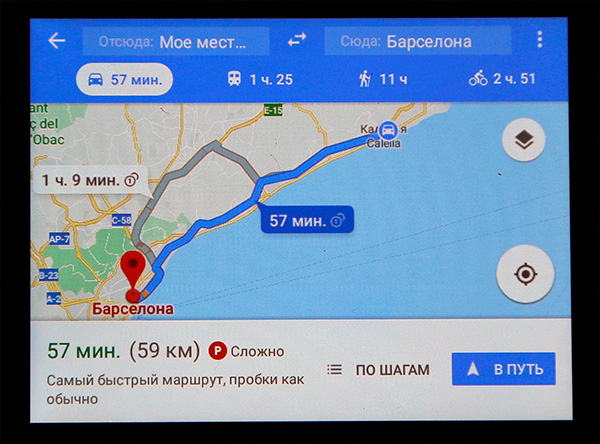 2. Транслируется на небольшой (по разрешению) экран - соответственно гугл-карты и так перегруженные надписями и советами и постоянно пытающиеся зазумиться и не дать тебе увидеть карту - очень неприятно использовать. А увидеть на них пробки на альтернативном маршруте при наличии основного - гуглмэпс сделает все, чтобы вы его не увидели. Может это и хорошо в России (где есть и Ситигайд и Яндекс), но в Германии - хавайте, что дают, гуглмэпс. Для тех, кто привык слушаться, опять же может и неплохо.
