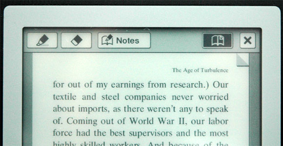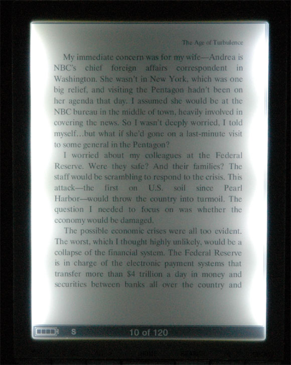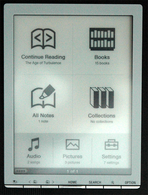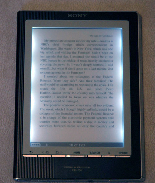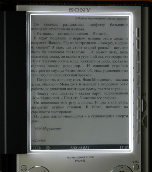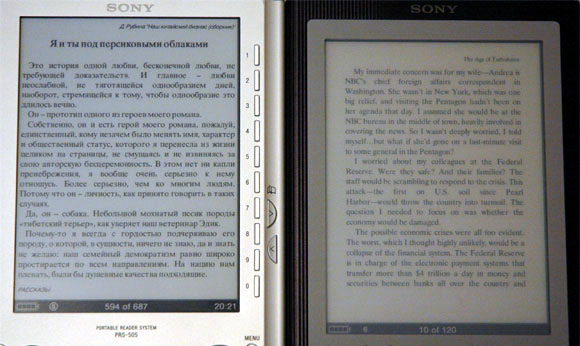 Однако я не скажу, что это выглядит совершенно неудобоваримо, вовсе нет! Текст в PRS-700 вполне читаем, подложка заметно лучше, чем у PRS-500, однако буквы менее контрастны, чем у PRS-505. Это плата за сенсорный экран.