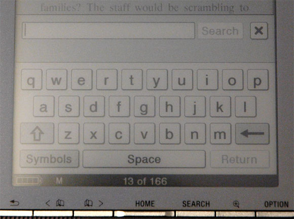При нажатии на кнопку Search появляется экранная клавиатура, с помощью которой задается строка для поиска. После нажатия на экранную кнопку Search система входит в специальный режим, при котором можно перемещаться по найденным словам или словосочетаниям.
