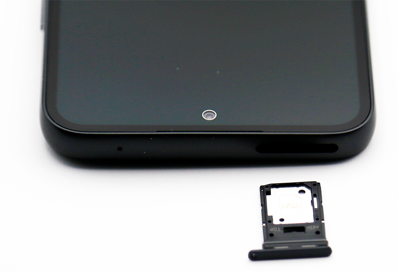 На верхней грани - второй микрофон для шумоподавления и комбинированный слот под две симкарты или симкарту и карту памяти.