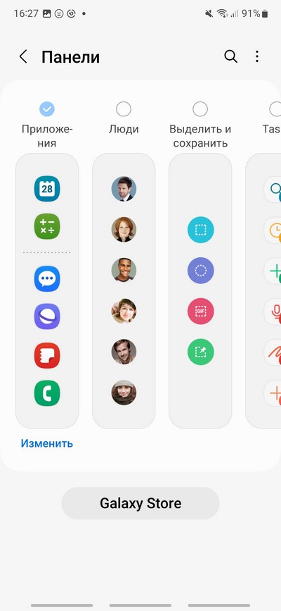 Традиционные для Samsung настройки дисплея: цветовые схемы, режим работы, настройка размера шрифта, масштаб, панели Edge.