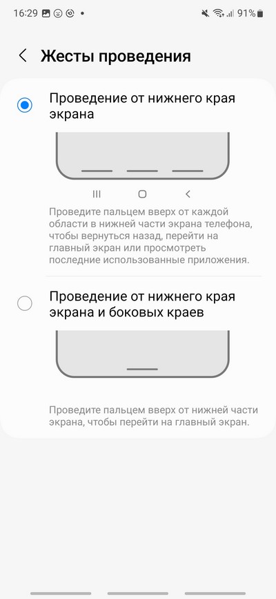 Как обычно, управлять смартфоном можно с помощью кнопок навигации (они настраиваются) или с помощью жестов. Также, как обычно у смартфонов Samsung, кроме стандартных жестов здесь можно включать жесты только от нижнего краях экрана, что лично мне нравится больше всего.