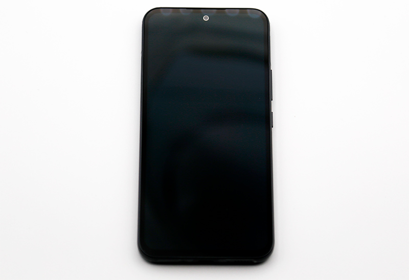 Лицевая часть - совершенно ровная, никаких тебе скругленных краев. Селфи-камера расположена строго по центру сверху. Рама у смартфона выполнена из пластика.