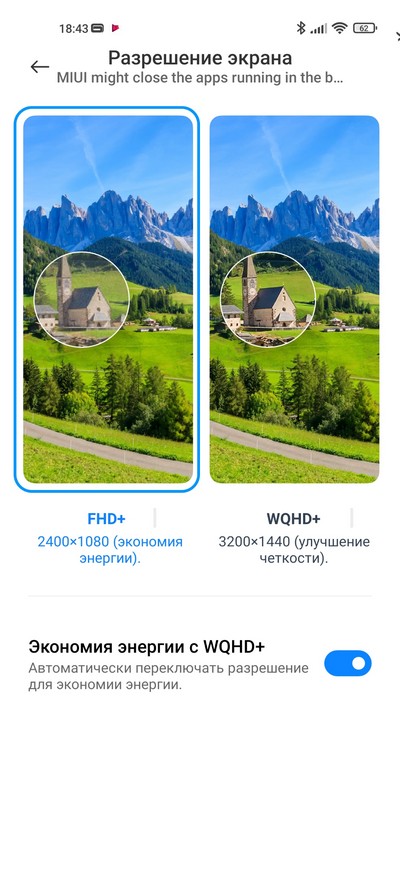 Разрешение экрана и частота обновления. Если выставить разрешение WQHD+, то там можно включить опцию экономии энергии.