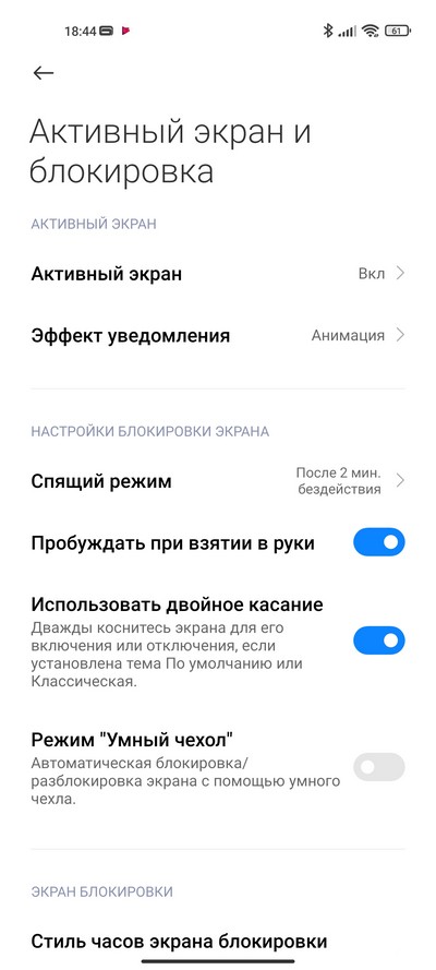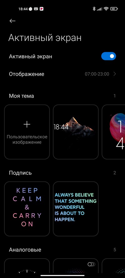 Настройки активного экрана (режим постоянно включенного экрана - AOD).