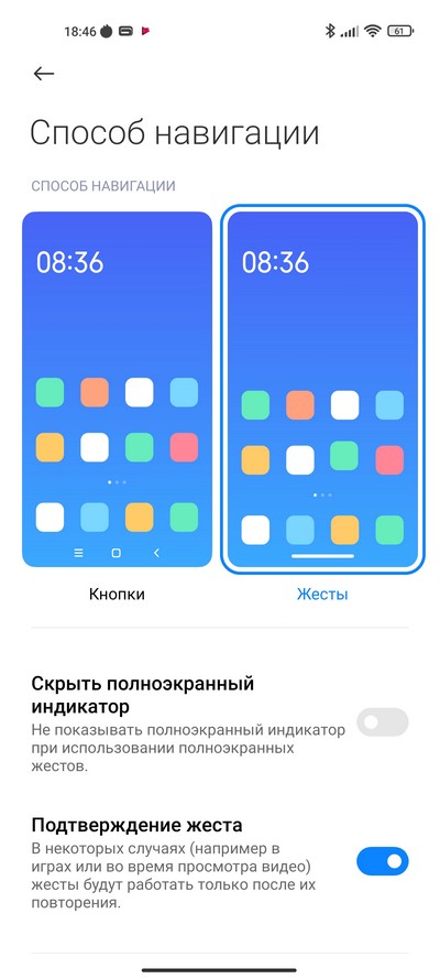 Стандартные варианты управления для MIUI: экранные кнопки и жесты. Можно включить сенсорный помощник.