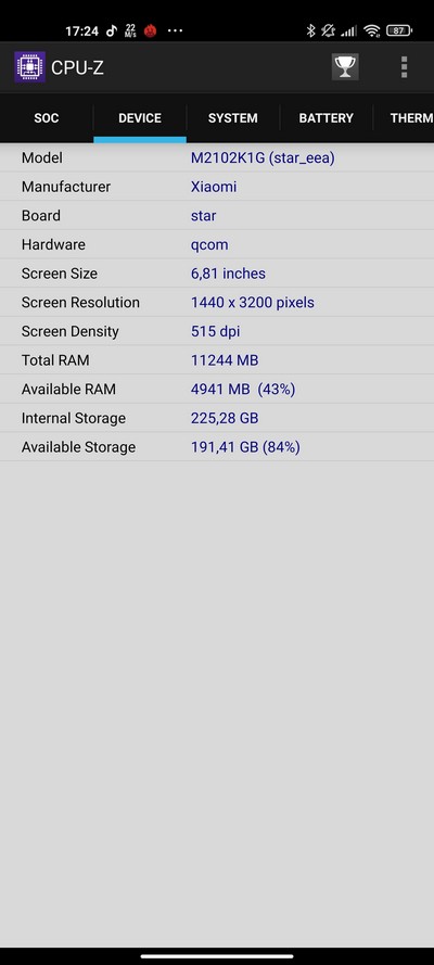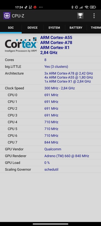 Процессор: Qualcomm Snapdragon 888 5G (5 нм), Octa-core (1 × 2.84 GHz Kryo 680 & 3 × 2.42 GHz Kryo 680 & 4 × 1.80 GHz Kryo 680)