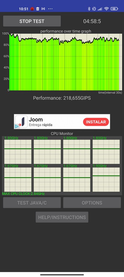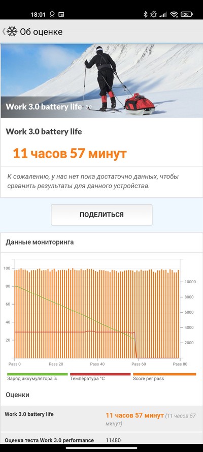 Измерил мерцание при понижении яркости. 75% яркости - в норме, 5%. 50% яркости - уже не в норме, 43,9%. 25% яркости - не в норме, 42,5%. Но вообще за 50% мерцания не залезает. Встречаются смартфоны, у которых и по 150% мерцания бывает.