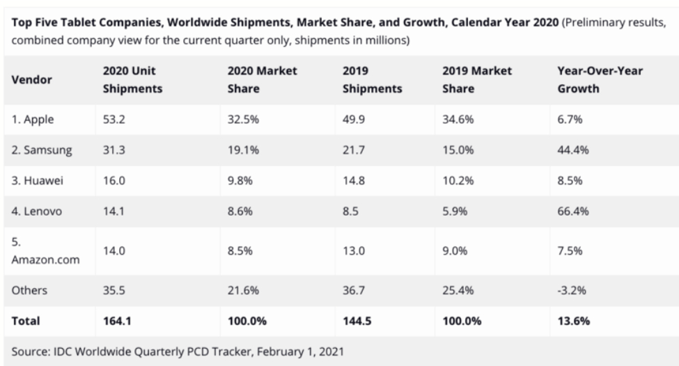 А рынок планшетов на iPadOS в прошлом году страдал от дефицита, вызванного небывалым спросом в связи с пандемией.