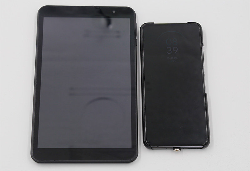Ну и вот этот планшет рядом с моим смартфоном ASUS Zenfone 7 Pro. У смартфона дисплей 6,7", вот и сравните, насколько больше дисплей восьмидюймового планшета.