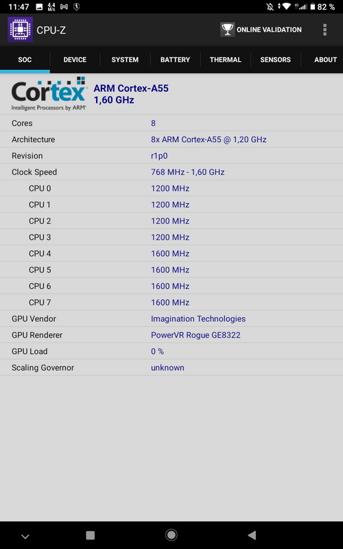 Процессор: Unisoc SC9863A (4 ядра Cortex A55 по 1,2 ГГц и 4 ядра Cortex A55 по 1,6 ГГц - 8 ядер)