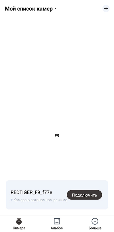 После включения видеорегистратор создаст свою сеть WiFi под названием REDTIGER_F9, к ней нужно подключиться, после чего приложение обнаружит устройство и предложит его добавить.
