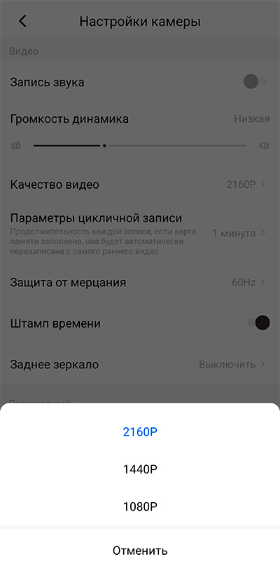 Варианты разрешений при записи: 4K, 2K и FullHD. В приложении также можно проверить уровень сигнала GPS.