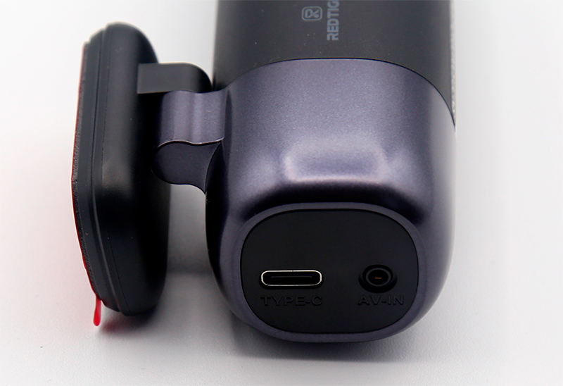 Видеорегистратор. Крепится он на площадке с лентой 3M, с крепления устройство можно снимать. На передней части располагаются объектив и динамик.