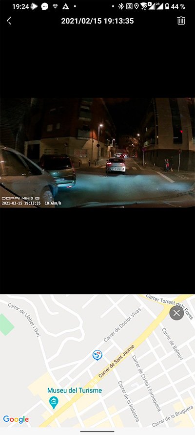 Так что с этим, можно сказать, разобрались. И какая-то логика в этом есть: если видеорегистратор установлен стационарно, а карты памяти у него нет, то, в общем, логично иметь эти ролики в смартфоне, и они там полноценные, максимального разрешения. (Кроме того, как я показал выше, их можно куда угодно экспортировать в оригинальном разрешении с наложением дополнительной информации.)