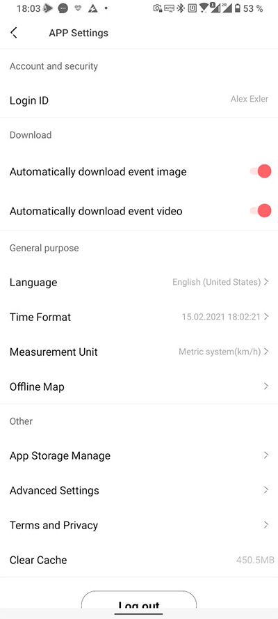 Ну, в общем, и все с приложением. А приложение при работе с этим видеорегистратором довольно важно. Если в случае, например, с видеорегистратором Xiaomi 70mai, у которого тоже нет дисплея, вы приложение можете запустить один раз, сделать необходимые настройки и забыть о нем, потому что записанные треки лежат в соответствующих папках на карте памяти и для защищенных роликов (срабатывание сенсора, нажатие кнопки) есть обычная папка Event, откуда вы соответствующие ролики просто переписываете, то здесь с этим все несколько сложнее, и я даже не сразу разобрался с тем, как это все работает (да и ни в одном из нескольких имеющихся обзоров никто об этом не сказал ни слова).