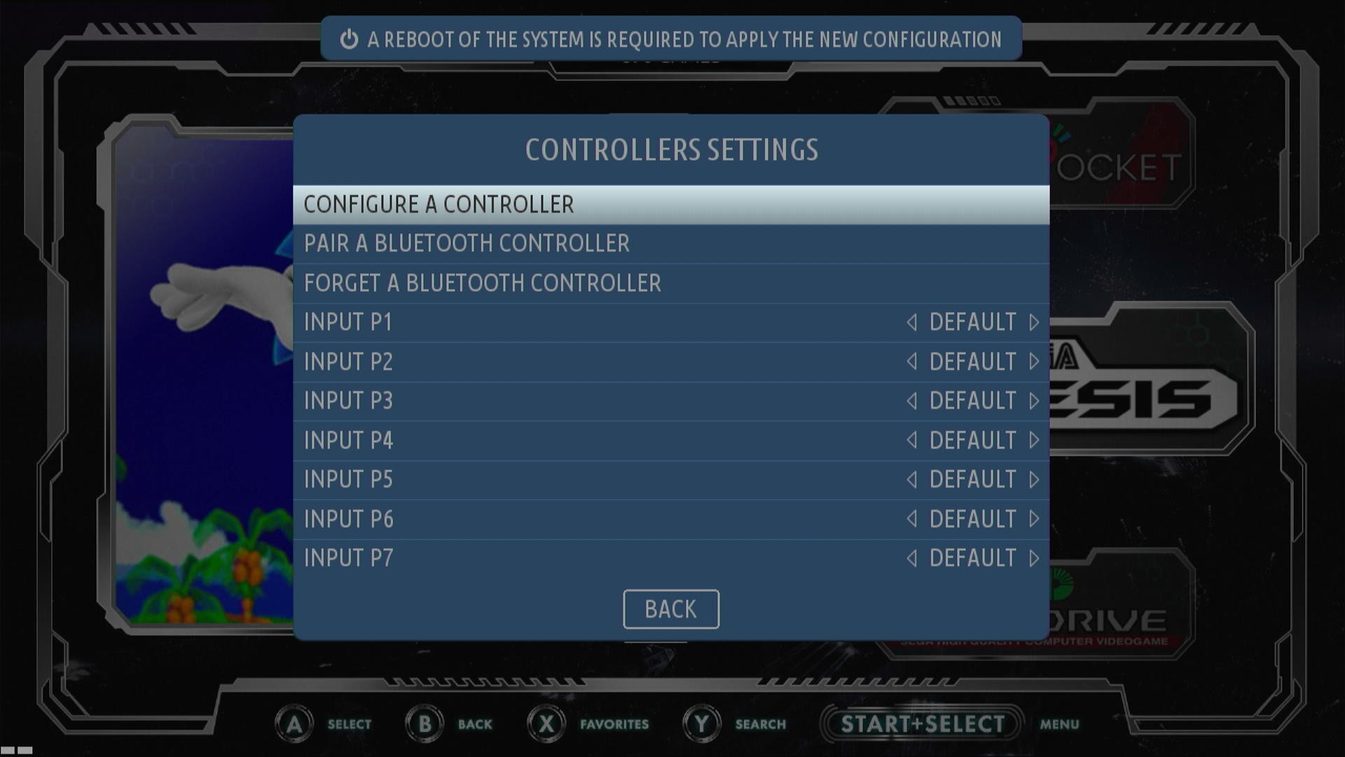 Меню, появляющееся на главной странице при нажатии Start-Select.