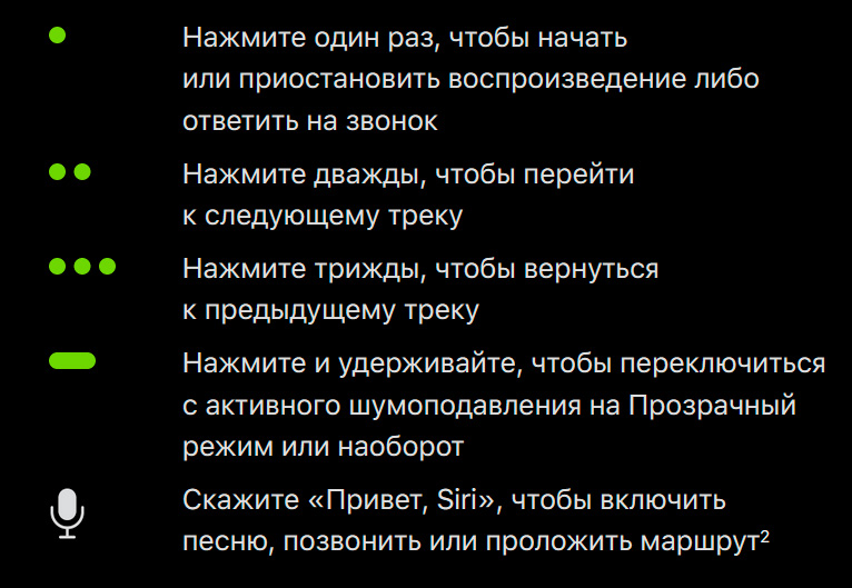 Наушники совершенно независимы друг от друга, могут использоваться по отдельности, управление у них одинаковое, однако в этих наушниках система управления совершенно иная, чем практически у всех остальных наушников. В обычных AirPods и куче других TWS-наушников используется система прикосновений - одиночных, двойных, длинных.