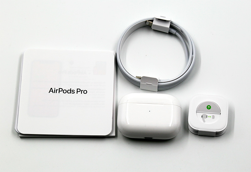 Комплект поставки: наушники, зарядный кейс MagSafe, кабель Lightning - Type-C, дополнительные силиконовые амбушюры трех размеров, документация.