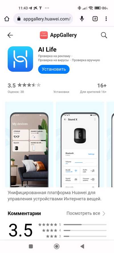 Приложение называется AI Life, его можно скачать из магазина приложений Huawei или же отсканировать QR-код из руководства пользователя.