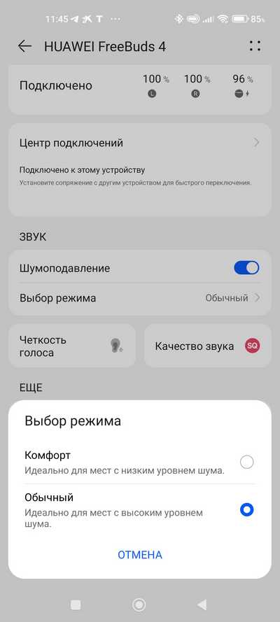 Кстати, длительное прослушивание аудио с активным шумодавом может создавать эффект некоего давления (у меня он возникал, хотя и далеко не сразу), и тут удобно то, что можно включать другой режим шумодава, более щадящий: он, конечно, шумы глушит хуже, но зато нет ощущения давления на голову.