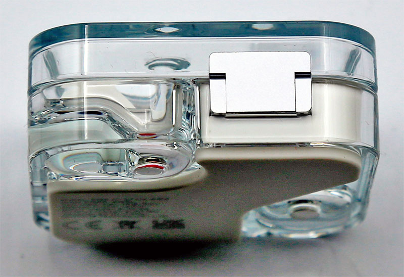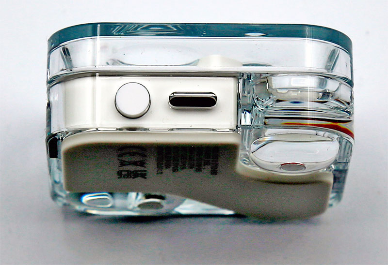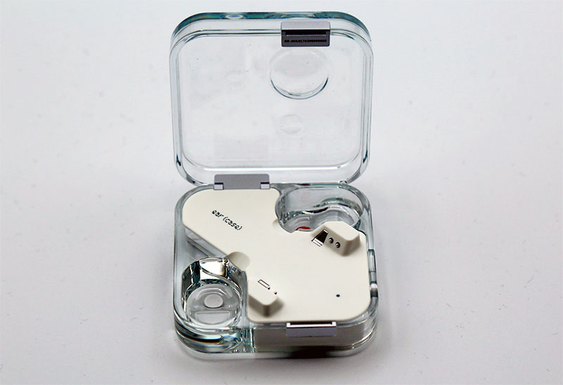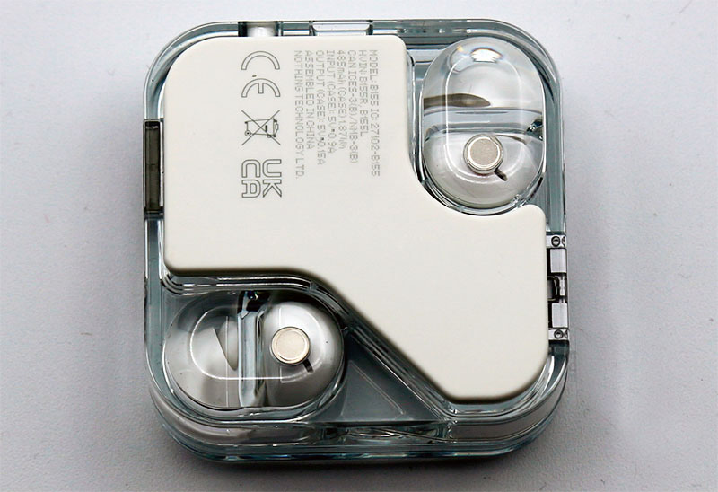 Надо сказать, что тут даже сам зарядный кейс уже привлекает к себе внимание своим необычным дизайном и прозрачностью верхней крышки. Я сначала даже подумал, что это просто упаковка такая эффектная - ан нет, это именно зарядный кейс. Его высота - всего 22 мм, так что кейс спокойно можно носить, например, в кармане джинсов.
