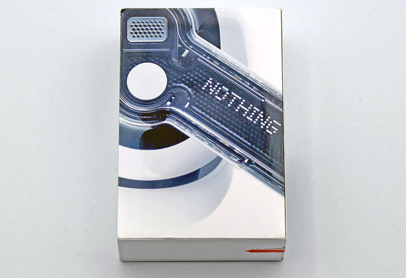 Упаковка, на которой изображено что-то красивое, но не очень понятное, зато с надписью Nothing. Позже мы поймем, что там изображена часть левого наушника.