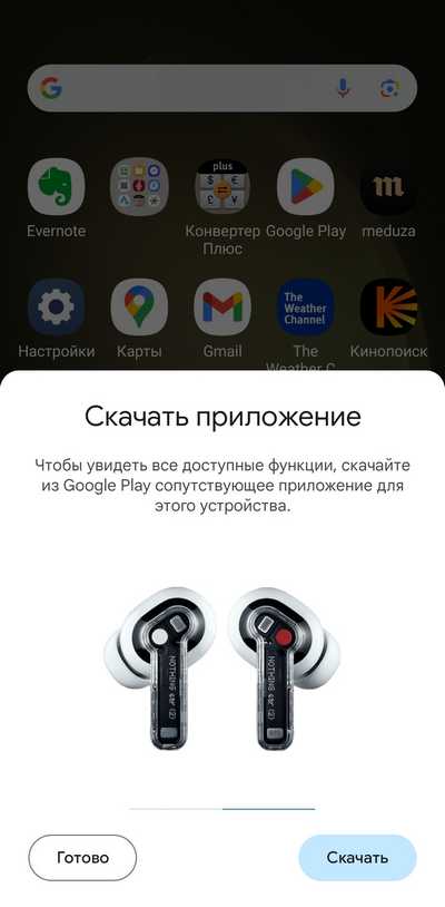 Здесь поддерживаются режимы быстрого подключения Google Fast Pair и Microsoft Swift Pair, так что когда смартфон на Android или компьютер видят эти наушники, находящиеся в режиме сопряжения, они выводят сообщение с предложением подключить наушники одной кнопкой. А при подключении предлагают скачать и установить соответствующее приложение для работы с этими наушниками (под Android приложение называется Nothing X).