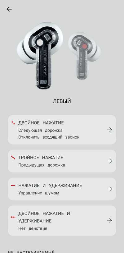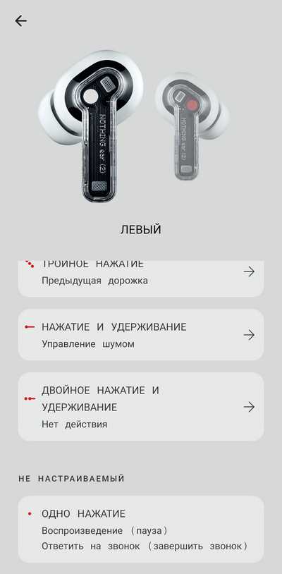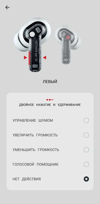 Громкость по-умолчанию регулировать нельзя, тут нет сенсорных площадок, как в AirPods Pro 2. Но в фирменном приложении Nothing X можно установить на двойное нажатие + удержание. Для левого наушника это будет уменьшение громкости, для правого — увеличение.