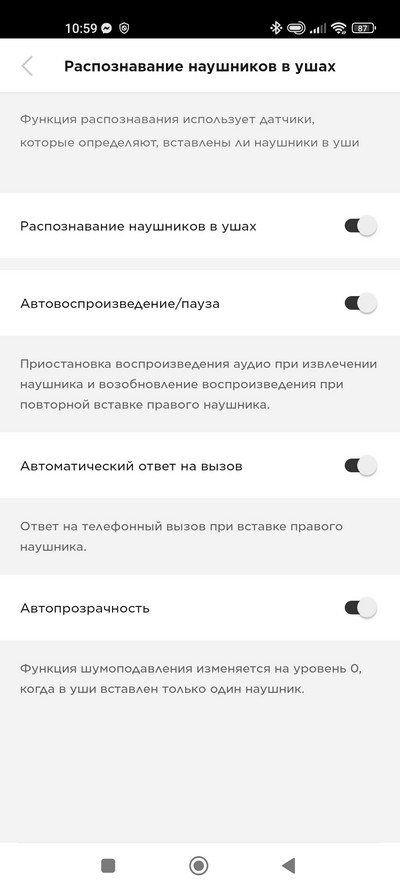 Здесь тоже никаких проблем нет: режим "прозрачности" работает очень четко, его удобно использовать в ситуациях, когда для безопасности нужно хорошо слышать все, что происходит вокруг.
