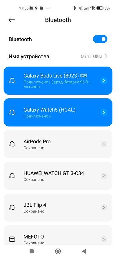 Мультипоинт (подключение к двум устройствам одновременно) здесь не поддерживается, однако наушники с легкостью переподключаются к другому устройству при нажатии кнопки "Подключиться" в Galaxy Wearable.
