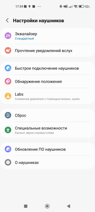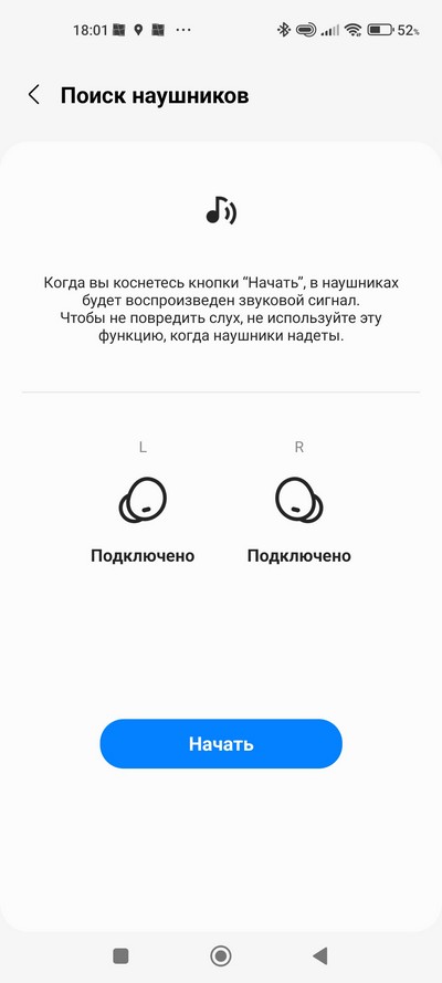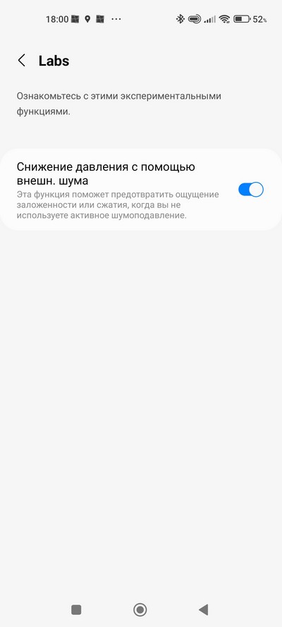 Поиск наушников (наушники при этом начинают издавать довольно громкий звук, и если они завалялись где-то в сумке или в ящике, то их можно будет обнаружить) и специальная настройка, которая называется странновато, однако, похоже, это и есть тот самый "режим прозрачности", когда через микрофон в наушники дополнительно подаются внешние звуки. Впрочем, замечу, что даже и без этой настройки наушники внешние звуки практически никак не задерживают: в них все прекрасно слышно.