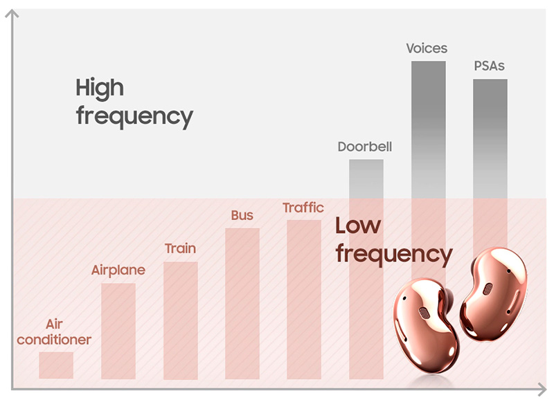 Разработчики сразу заявляли, что шумодав здесь глушит звуки только в низкочастотном диапазоне. И приводили вот такую картинку.