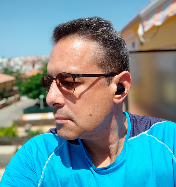 Установка наушников в ушной раковине не вызывает никаких затруднений - тут все четко и понятно. И замечу, что здесь используется, на мой взгляд, самый удобный вариант крепления: наушники имеют небольшой корпус и целиком находятся в ушной раковине, не свешиваясь в сторону или вниз, как у многих других TWS-наушников, также здесь очень нелишним является дополнительное крепление для уха, которое фиксирует наушник в верхней части ушной раковины.
