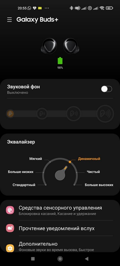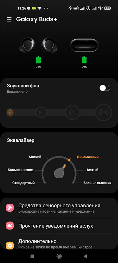 Эти наушники можно настраивать через фирменное самсунговское приложение Galaxy Wearable (только для него нужно будет скачать Galaxy Buds+ Plugin).