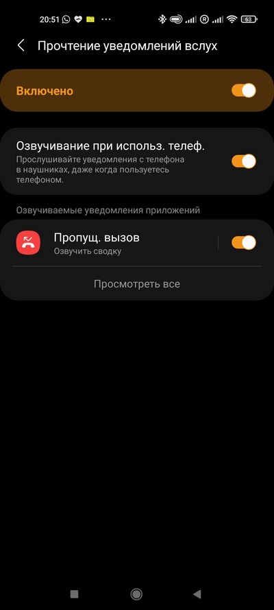 Есть режим прочтения уведомления вслух и дополнительные настройки.