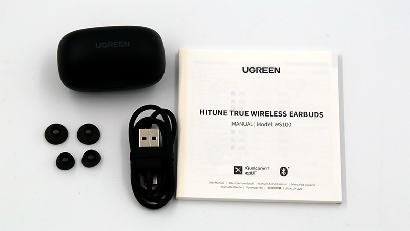 Первая модель у них называлась очень оригинально - Hi-Fi stereo TWS earbuds, а если уменьшительно-ласкательно, то просто Ugreen TWS. Они стоили всего 1450 рублей, при этом ожидаемо не поддерживали кодек aptX (впрочем, AAC там заявлен), не имели полноценной влагозащиты, да и автономность у них была только три часа.