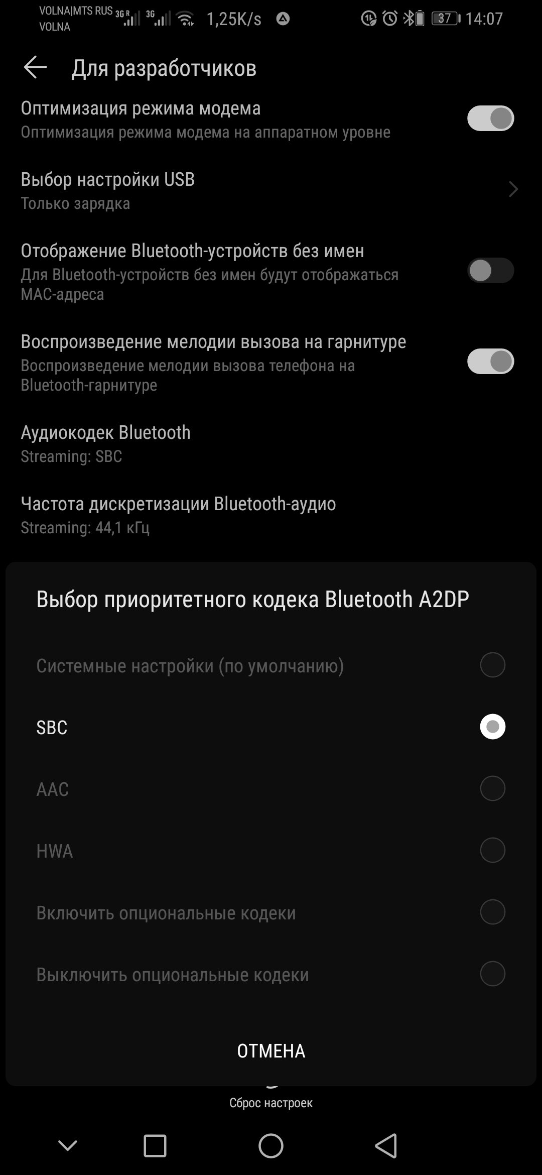 К Huawei P30 Pro эти наушники подключились по фирменному хуавеевскому кодеку HWA (он как раз основан на кодеке LDHC).