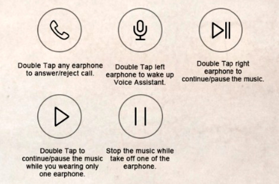 Двойной тап на любом наушнике - ответ на звонок. Двойной тап по левому наушнику - вызов голосового ассистента. Двойной тап по правому наушнику - проигрывание/пауза. (Если используется только левый наушник, то у него двойной тап - проигрывание/пауза.) Как только какой-то наушник вынимается из уха - автоматически включается пауза, что, в общем-то, очень удобно (это тоже скопировано с AirPods, тут установлен такой же инфракрасный датчик).