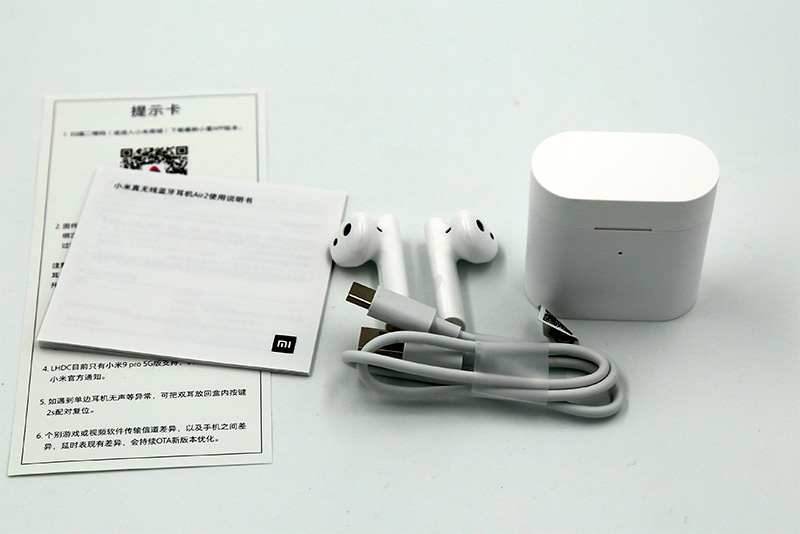 Внутри: наушники, зарядный кейс, кабель для зарядки USB - Type-C, инструкция на китайском.