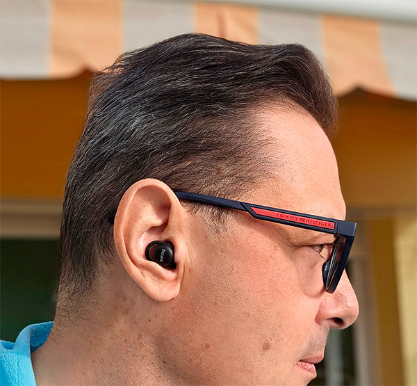 Они очень маленькие, в ухе скрываются целиком, и если смотреть на себя в анфас, то эти наушники вообще не видны.