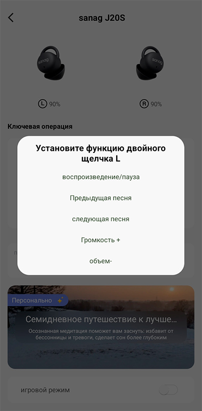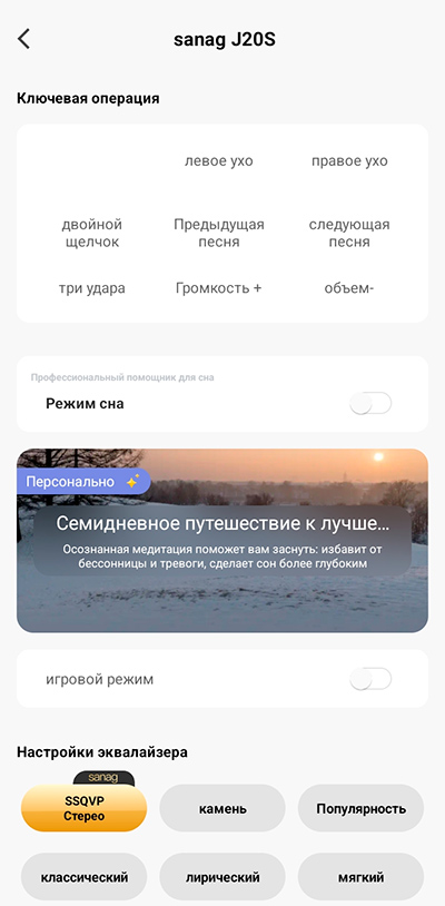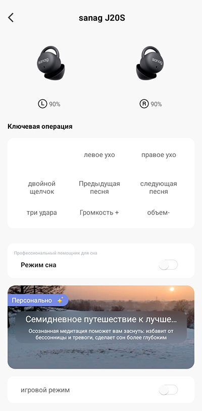 Эти наушники можно подключить к приложению Sanag App (оно есть и в Google Play, и в App Store), и там доступны определенные настройки.