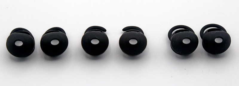 Также имеет смысл попробовать разные амбушюры, входящие в комплект, чтобы выяснить, какие из них вам больше подходят. Я сначала использовал те амбушюры, которые были установлены на наушниках, но потом попробовал вариант поменьше с другим крючком - и мне они подошли больше.