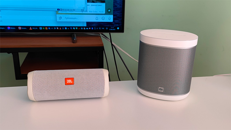Я сравнил их звучание. Flip4 немного громче (у нее мощность 16 ватт, так что неудивительно), у нее немного глубже басы, при этом не слишком выразительные средние и не такие четкие высокие, как у Mi Smart Speaker: видимо, тут еще играет роль кодек, потому что Flip4 поддерживает только SBC, а колонка Xiaomi подключается по AAC.