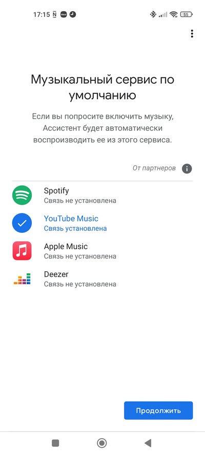 Настройка голосового ассистента, выбор музыкального сервиса.