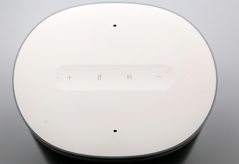 Смотрится колонка очень хорошо, ну и благодаря своему дизайну она хорошо впишется в любой интерьер. Белый пластик, металлический корпус, едва заметные сенсорные управляющие кнопки на верхней крышке колонки - все очень хорошо продумано. Два высокочувствительных микрофона расположены на верхней крышке. На корпусе колонки сделаны 10351 отверстий, сквозь которые звук из динамика пробирается наружу и становится фактически осязаемым - так, по крайней мере, утверждает разработчик.