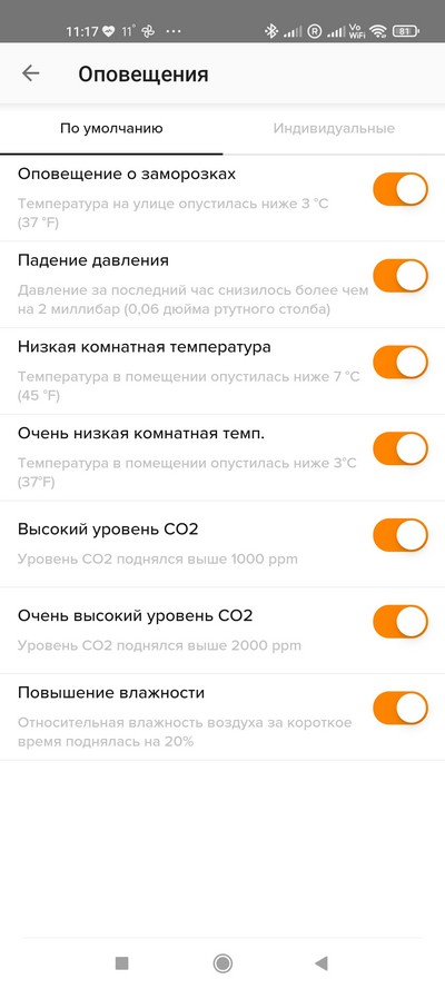 Для меня существенным минусом этого устройства является невозможность посмотреть основные погодные параметры не открыв приложение смартфона. Удобно же просто глянув на дисплей устройства увидеть температуру/влажность внутри помещения и снаружи. А уже через приложение смотреть все остальные, включая СО2, прогноз погоды и т.п....