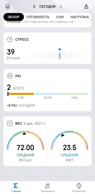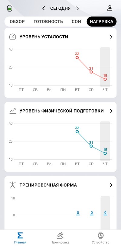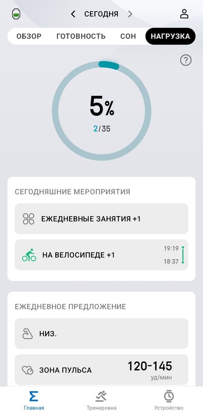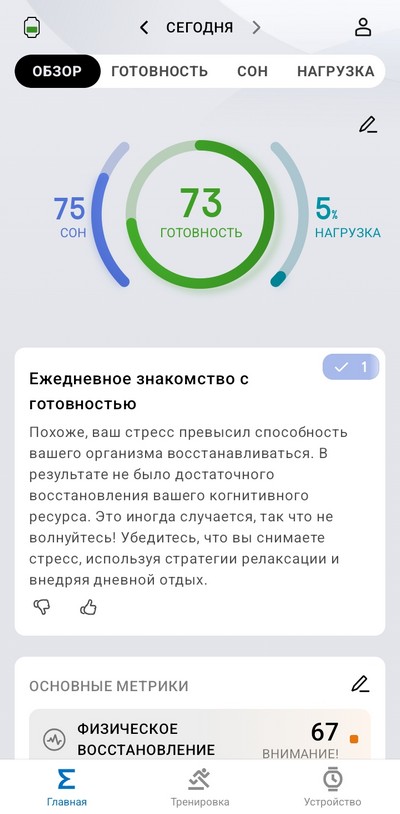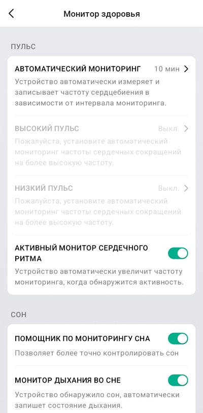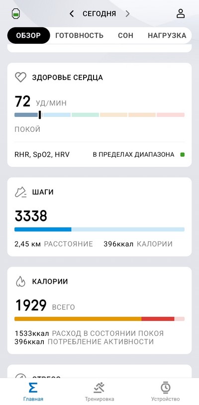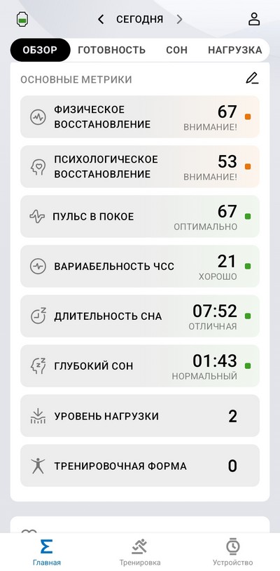 Мониторинг: сон, физическая активность, тренировки, сердечный ритм, оксигенация крови