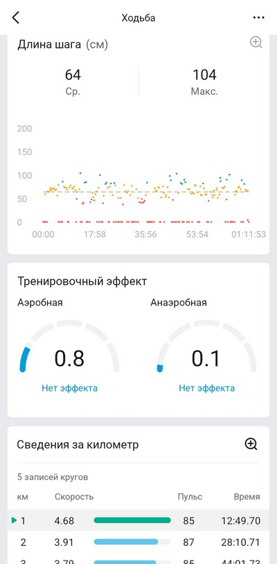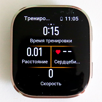 Тут есть автоматическое определение тренировки, что достаточно удобно. Также есть режим автоматической постановки тренировки на паузу, можно выставить уровень отсечки пульса. По окончании тренировки будет доступен отчет на часах об интенсивности тренировки и расстоянии и маршруте, который вы прошли. Параллельно устройство голосом продублирует определенную информацию.